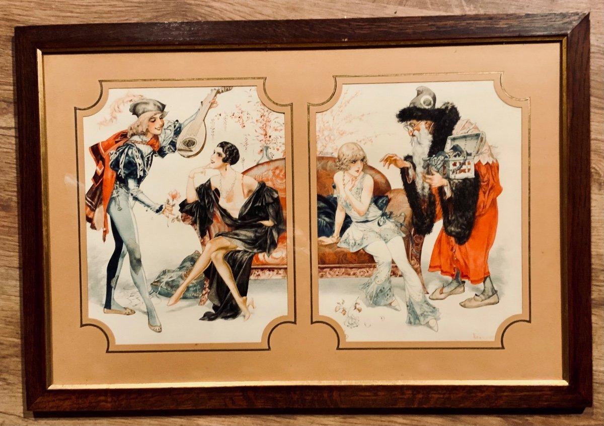 Aquarelle de Scène Galante Satirique