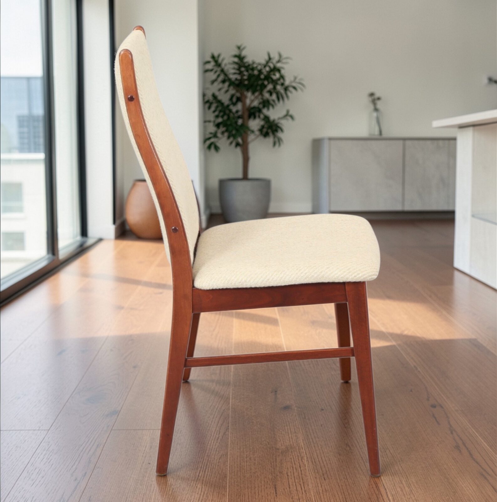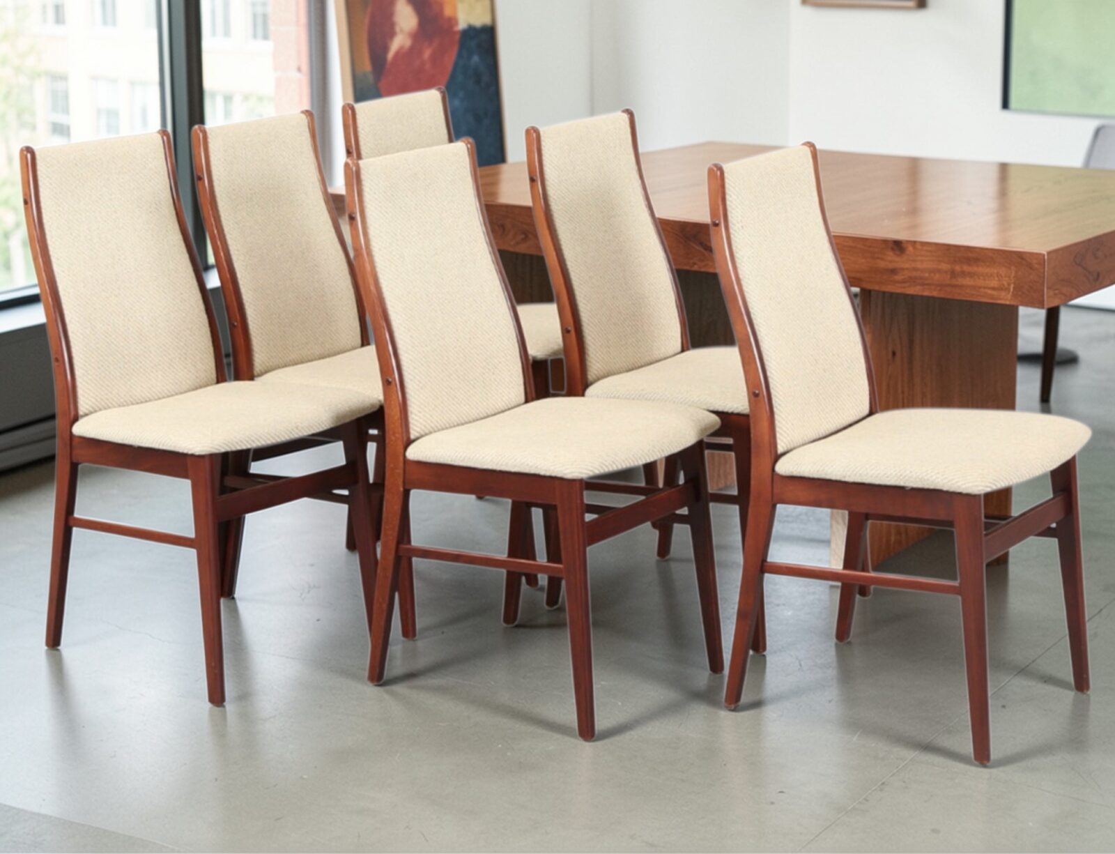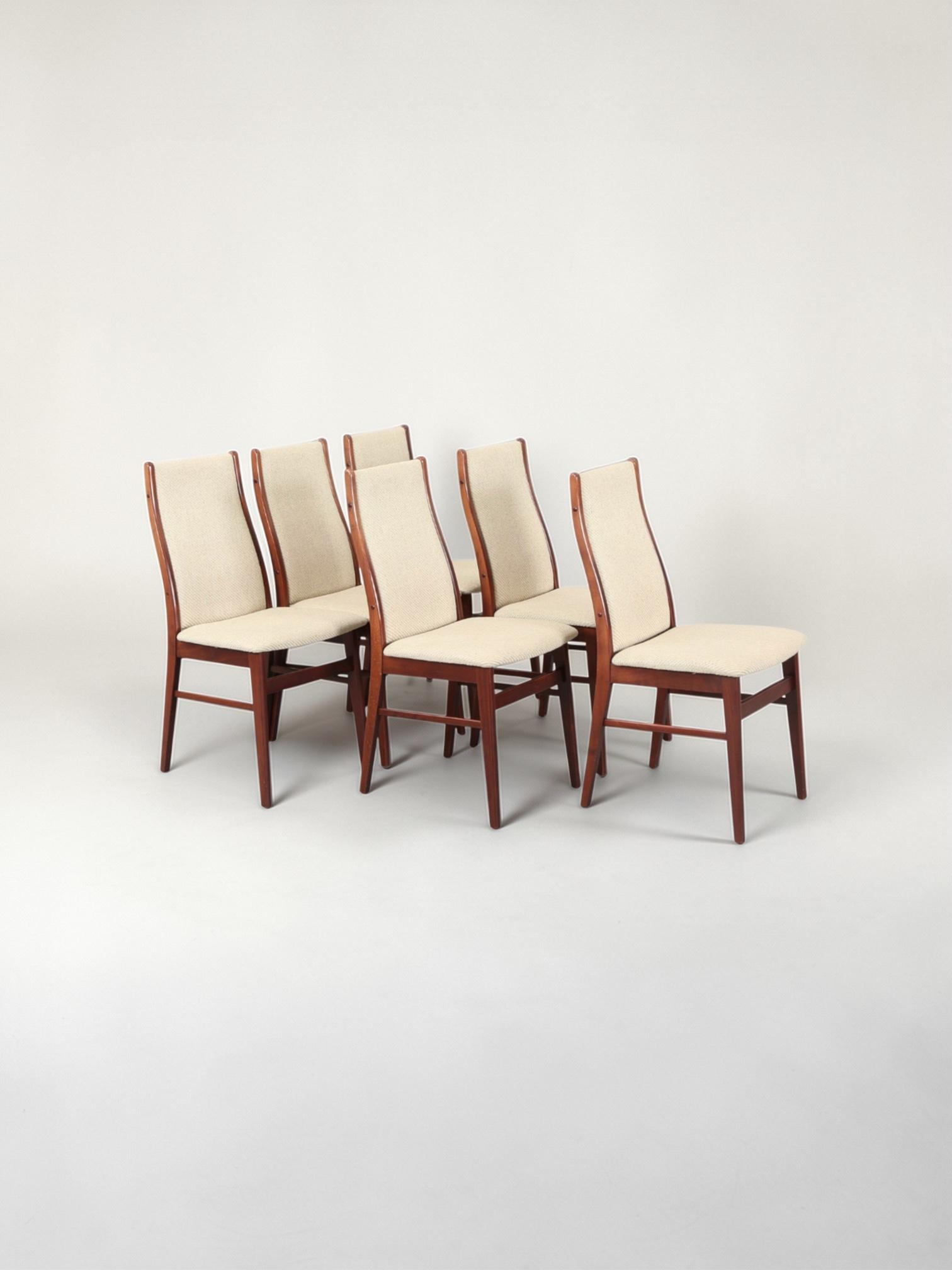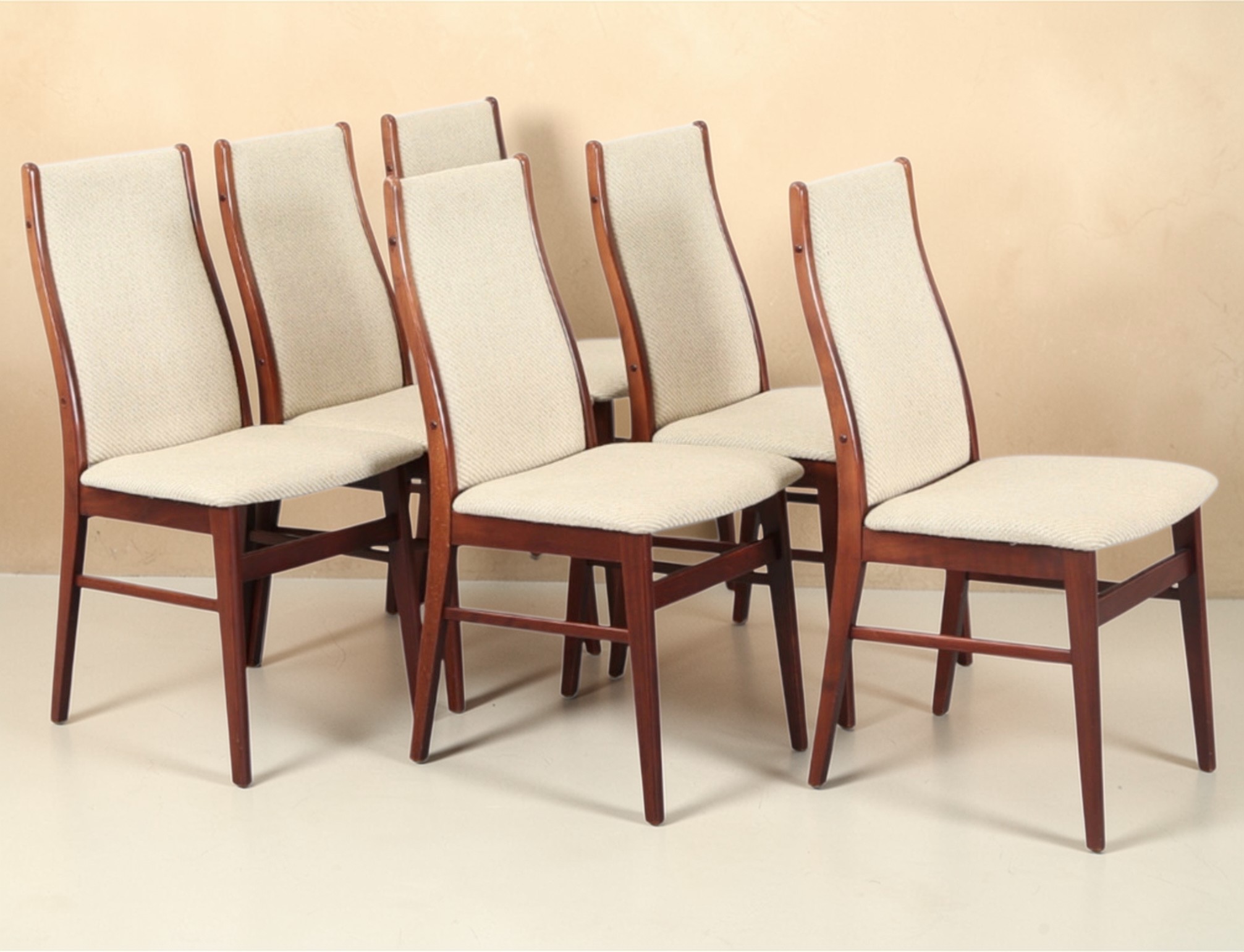 Série de six très confortables chaises design danois années 1960/70 en bois et tissu.
