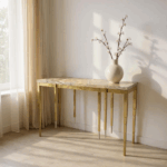 Console en laiton et onyx de Stéphane Le Meur, pièce unique signée.