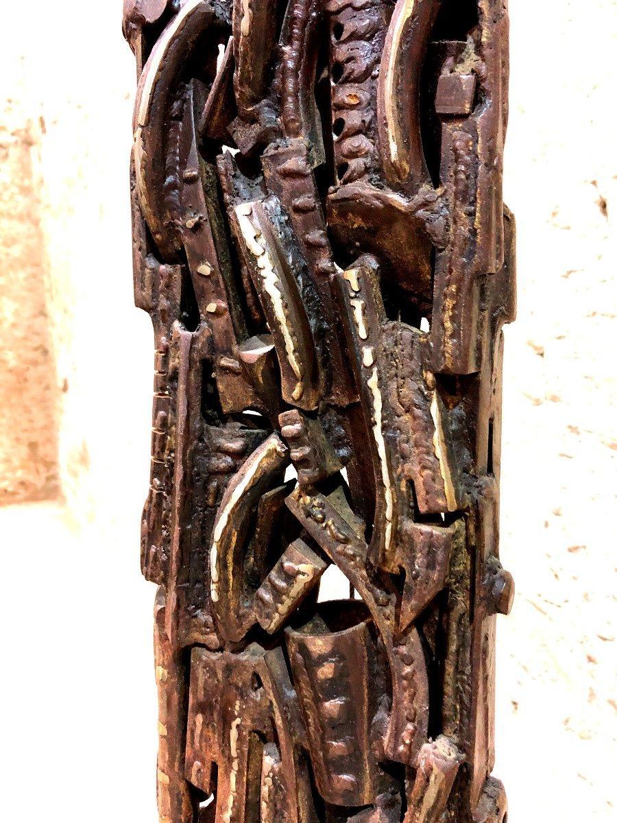 Une œuvre d’art qui ne laisse pas indifférent. Ce totem métallique, à la fois brut et raffiné, est une invitation au voyage intérieur. Une pièce unique, chargée d’émotions et de symbolisme. »