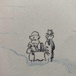 Le style inimitable de Sempé, caractérisé par ses traits délicats et son humour subtil, donne vie à cette composition aérienne et légère. L’artiste joue avec les perspectives et les tailles pour créer une atmosphère à la fois familière et décalée.