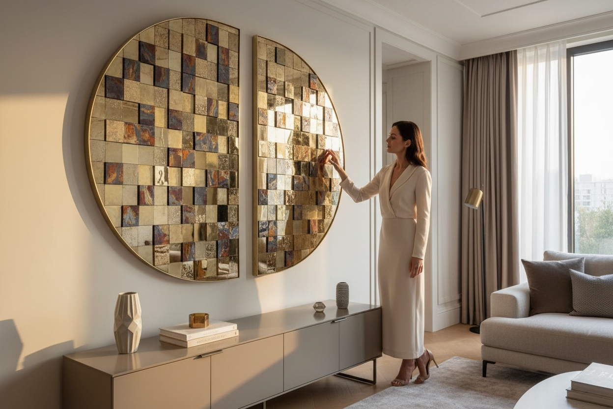 Chaleureuse et lumineuse cette œuvre d’art murale exceptionnelle s’alliant à tous styles d’intérieurs donnera une touche à la fois luxueuse et poétique à votre espace…