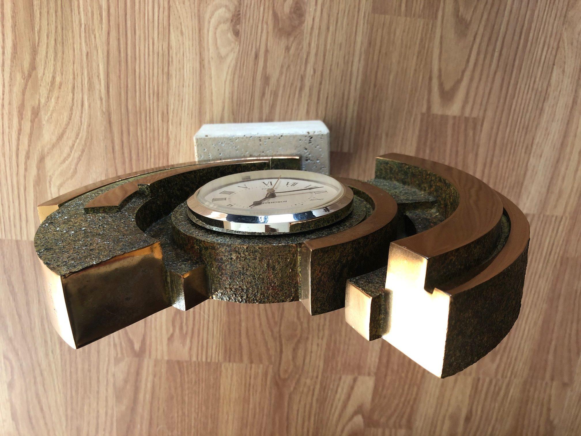 Signée par un horloger de renom, cette pendule est non seulement un objet de décoration raffiné, mais aussi un instrument de précision horlogère. Son socle en travertin lui confère une élégance intemporelle et assure sa stabilité parfaite.
