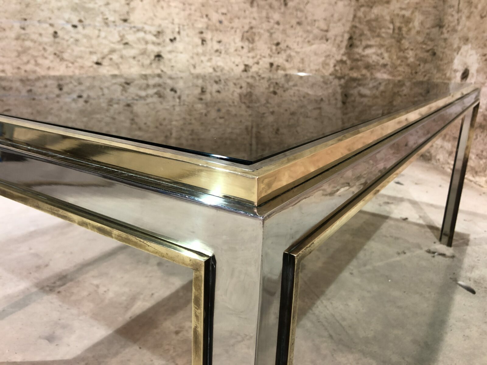 Cette superbe table de salle à manger, attribuée au célèbre designer italien Roméo Rega, est un véritable témoignage du design italien des années 1970. Sa structure en chrome et laiton doré, associée au plateau en verre fumé, lui confère une élégance intemporelle qui s’adaptera à tout intérieur contemporain.