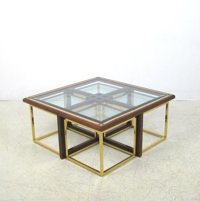 Table basse en bois et laiton doré Avec 4 Bts de Canapé Années 1970
