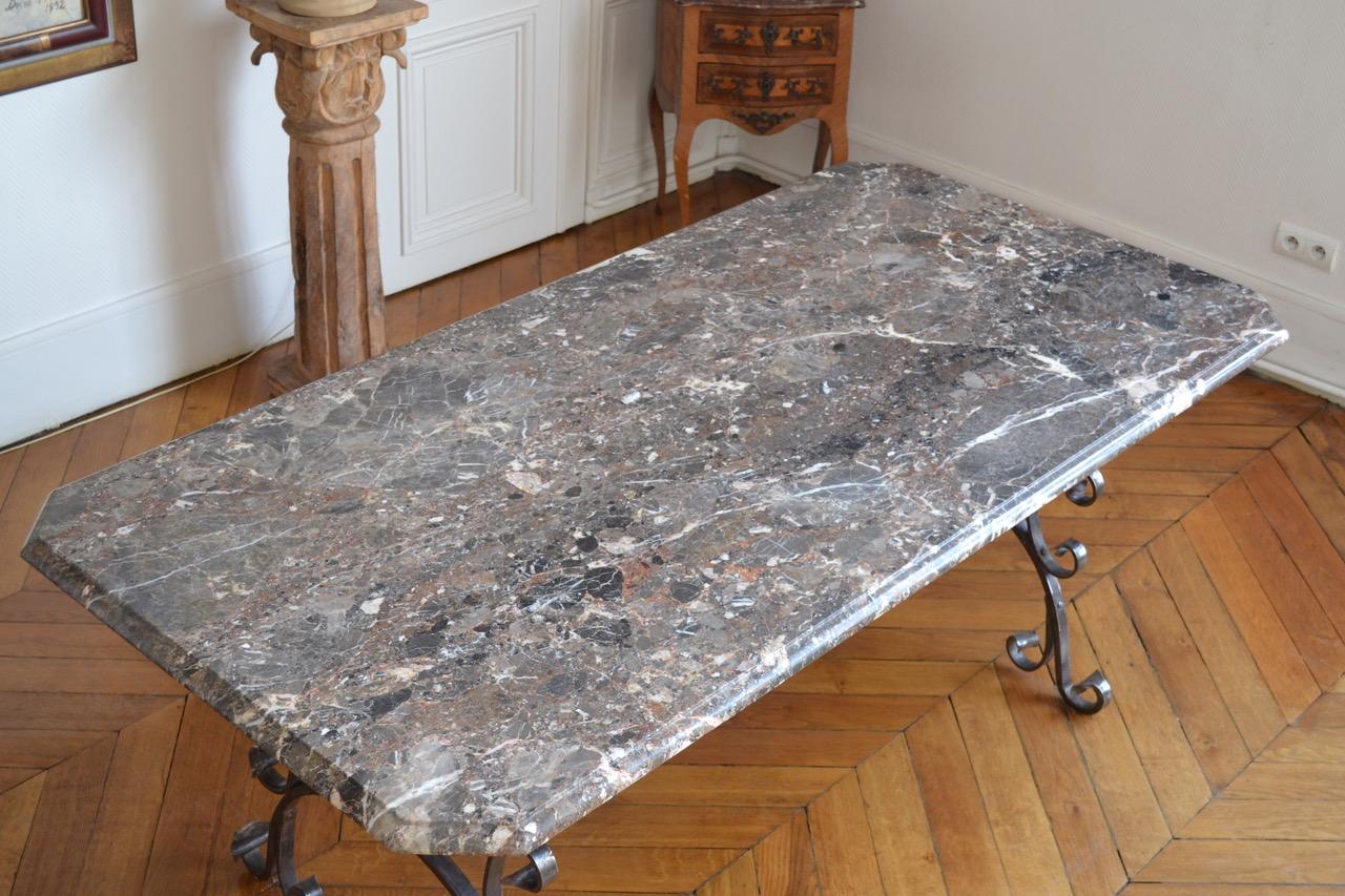 Table de Salle à Manger en Marbre et Fer Forgé, circa 1900